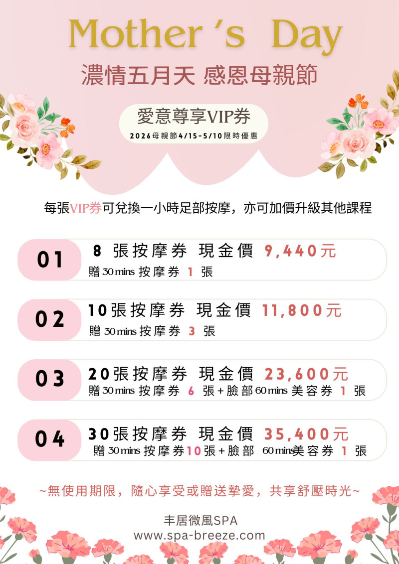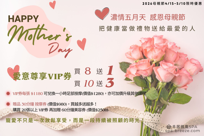 丰居微風SPA 母親節限定|愛意尊享VIP券
