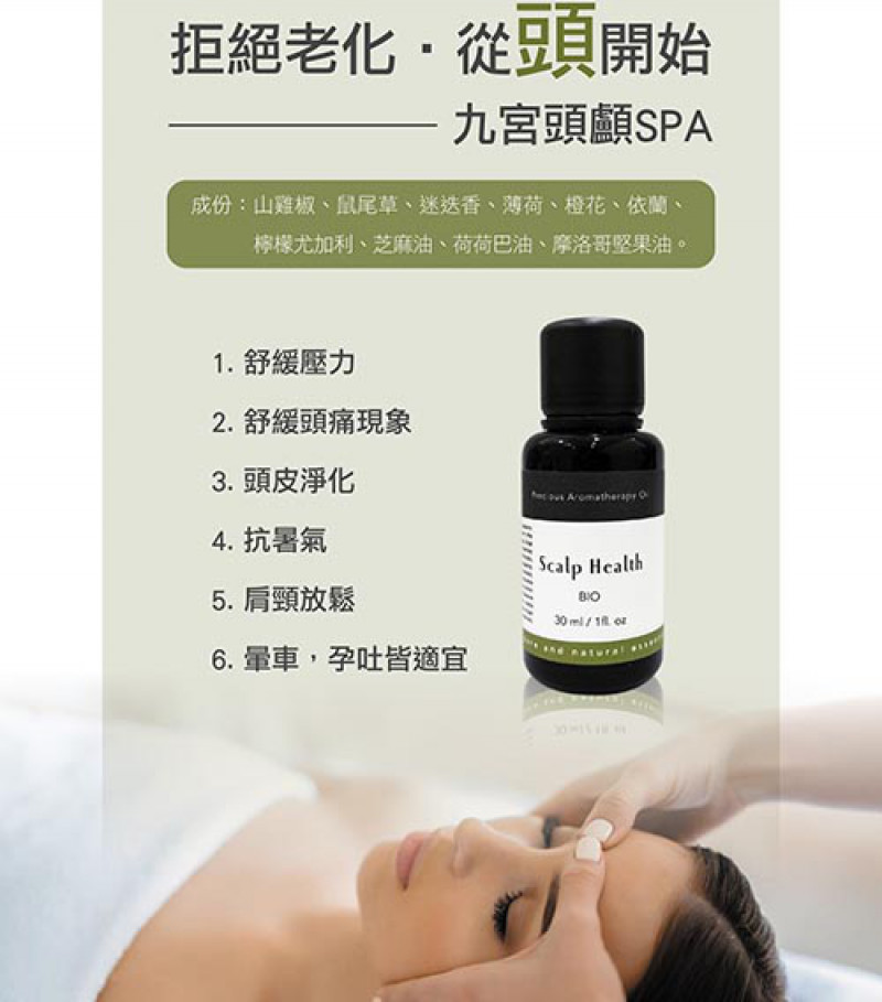 成分:山雞椒、鼠尾草、迷迭香、薄荷、橙花、依蘭、檸檬尤加利、芝麻油、荷荷芭油、摩洛哥堅果油