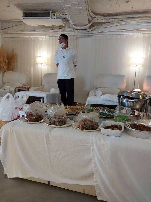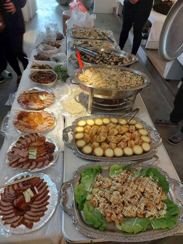 這次月會跟感謝餐會一起舉辦,叫了很豐盛的外燴,烤鴨、燒肉、炸雞、蛋塔....芳療師們的腦袋與胃袋都塞滿好料喲!